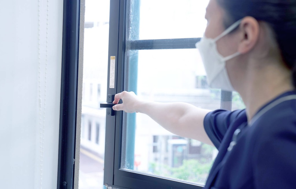 - 全ての診療台上部、待合室、廊下の窓を解放し、診療時間中は常時換気